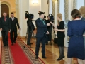 Но особо впечатлило присутствующих украшение на голове Олеси Григорьевой. Ободок из белых розочек очень сильно напоминал свадебный венок. Любительницы ярко-красных одежд - Оверина и Григорьева - при встрече, разумеется, обменялись комплиментами.