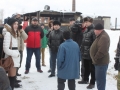 На территории каких-то значимых изменений с последнего посещения волонтерами приюта не было. Даже казалось, что в выходные никто и не собирался очищать снег и менять солому. В уличной печке варилось месиво, никак не соответствующее оговоренным ранее 20 кг мяса и геркулесу.