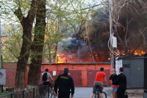 Когда приехали две пожарные машины, одноэтажное строение было целиком охвачено огнем, а столб черного дыма виднелся со всех точек Центрального округа. Спасателям быстро удалось локализовать очаг возгорания, однако хозпостройка была полностью уничтожена огнем.