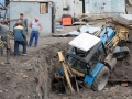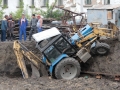 Корреспонденты издания вышли на улицу, чтобы разобраться в случившемся. Однако строители предприняли всевозможные действия, дабы помешать репортерам сделать их работу - в ход шли угрозы и нелицеприятные высказывания в адрес работников СМИ. За 20 минут при помощи автокрана трактор удалось поставить «на ноги», однако риск перевернуть еще и кран был вполне вероятен - в какой-то момент его передние колеса оторвались от земли.