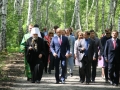 Когда крест был установлен, дождь хлынул сильнее, и предусмотрительные прихожане достали зонты. Чиновники тоже предпочли не мокнуть - Назаров и Синюгин оказались под одним зонтом.