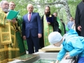 После чтения молитв 74-летний владыка взял в руки лопату и забросал землей основание креста, который помогли установить священники. В это время солнце спряталось за тучами и начал накрапывать дождь.