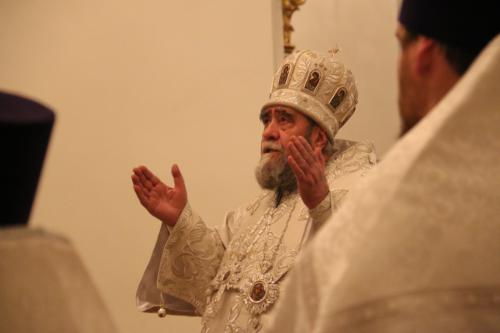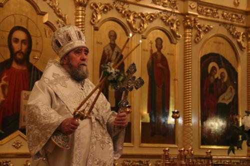 А в это время губернатор Виктор Назаров внимательно слушал песнопения и молитвы и наблюдал за действиями митрополита Владимира, но не осенял себя крестом. Не молился и стоящий рядом с ним Игорь Зуга, лишь склонявший голову в особо торжественные моменты службы.