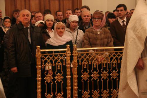 Кстати, храм во время службы был заполнен до отказа, причем вопреки сложившемуся стереотипу основное число прихожан составляли не возрастные бабушки-пенсионерки, а довольно молодые прихожане, среди которых, как ни странно, доминировали крепкие и хорошо одетые мужчины в возрасте от 20 до 50 лет. Многие пришли целыми семьями и с маленькими детьми, и юные омичи с любопытством наблюдали за одним из самых красивых обрядов РПЦ.