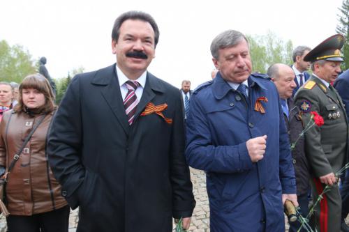 Сегодня, 8 мая, в Омске прошла торжественная церемония перенесения и зажжения частицы того самого Вечного огня с Поклонной горы в Москве. Помимо омских политиков засветились и бизнесмены - так, Михаил Сутягинский буквально «приклеился» к министру сельского хозяйства Омской области Виталию Эрлиху.