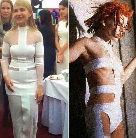 Что бы вы понимали! Ну присмотритесь внимательнее: это практически один в один наряд Лилу из «Пятого элемента». Жаль, что сам элемент подгулял.