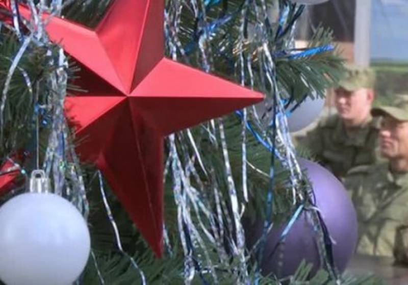 Российские военные в Сирии заслушали новогоднее обращение главы государства, стоя у привезенной из России 15-метровой елки.