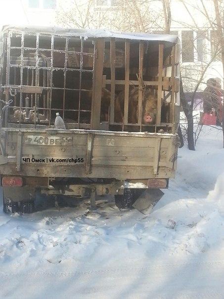 В группе «ЧП Омск» пользователь Ринат Арипов опубликовал несколько фотографий и написал, что на улице Дмитриева в Омске уже три дня стоит грузовик с живыми поросятами. По словам автора, животных не подкармливают и они замерзают.