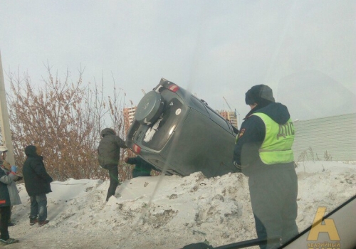 Сегодня, 5 февраля, произошло ДТП на объездной дороге между «Ареной-Омск» и бульваром Архитекторов, так называемой «кишке». Автомобиль Chevrolet Niva выбросило из колеи, после чего машина перевернулась на крышу и оказалась в сугробе.