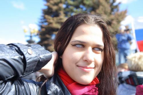 Кто-то предпочел скрыть не лица, а... зрачки. Как пишут участники в соцсетях, весьма специфические с виду линзы примерно вдвое сокращают видимость. Плакат – соответствующий