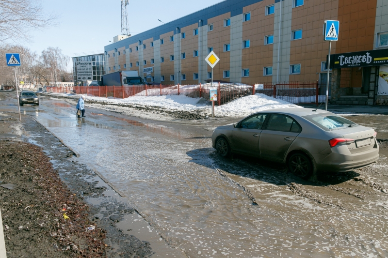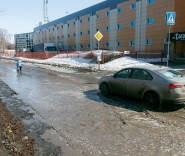 | Часто огромные лужи встречаются на пешеходном переходе. Людям приходится переходить в неположенном месте и надеяться на внимание водителей. ФОТО: А.Катаев |