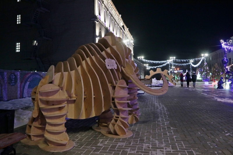| В Омске у здания Эрмитажа Сибирь появился деревянный мамонт. ФОТО: А.Катаев |