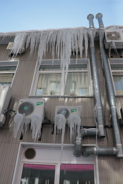 На улице Красный путь вот такая гирлянда из сосулек. Хозяевам здания есть над чем задуматься. ФОТО: А.Катаев