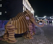 | В Омске у здания Эрмитажа Сибирь появился деревянный мамонт. ФОТО: А.Катаев |