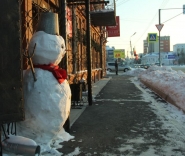 | На улице Орджоникидзе снеговик, словно привратник, приветствует прохожих. ФОТО: А.Катаев |