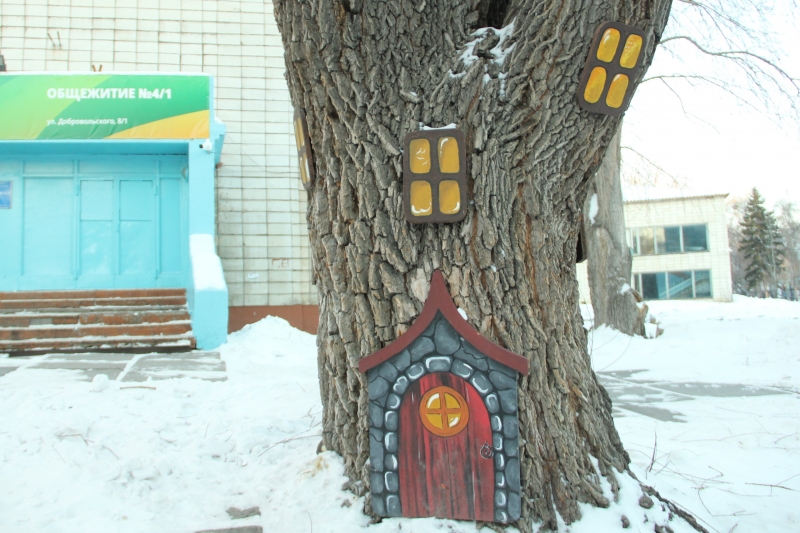 | Возле студенческого общежития омичи сделали сказочный дом. ФОТО: А.Катаев |
