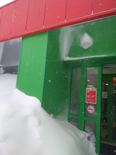 | Метель на "пятерочку" (магазин сети "Пятерочка" по ул. Малиновского после бурана). ФОТО: Максим Баландин |