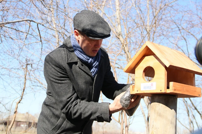 | Глава омского минприроды Лобов лично позаботился о пропитании для пернатых. ФОТО: А.Катаев |