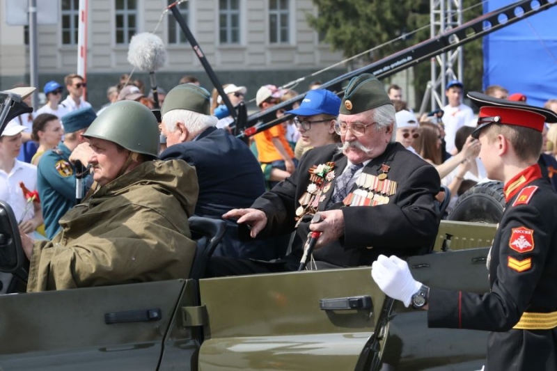 | Парад в честь 9 мая. В самом его начале на военных УАЗах на Соборную площадь торжественно привезли ветеранов Великой Отечественной. ФОТО: А. Катаев |