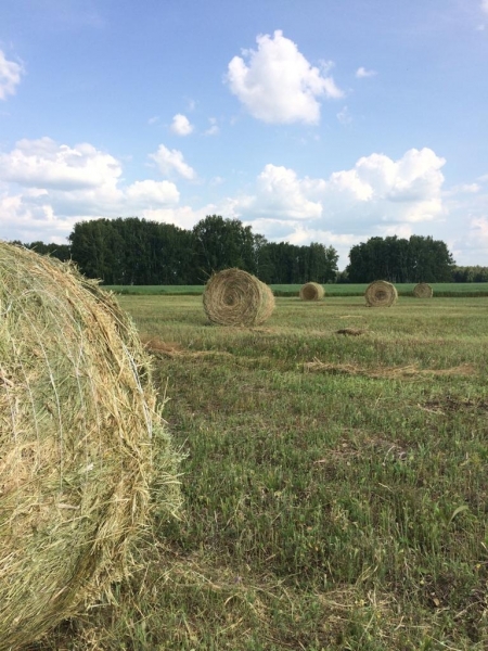 | На полях в Омской области идет заготовка сена. |