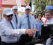 | Под надежной защитой! "Трое из ларца одинаковых с лица". Вип-персоны на Агро-Омске появились в фирменных кепочках -белоснежная защита от солнечного удара не помешала.Денечки эти в Омске выдались жаркими...Фото: А. Катаева |