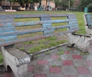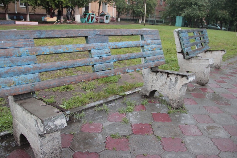 | Скамейка по-омски! Сидеть вредно? Возможно использование в качестве уличного тренажера для укрепления мышц бедра. Инструкция: прислониться к спинке конструкции, ноги на ширине плеч, стопы параллельно. Опуститься в позу "всадника", согнув ноги в коленях. Фото: А. Катаева