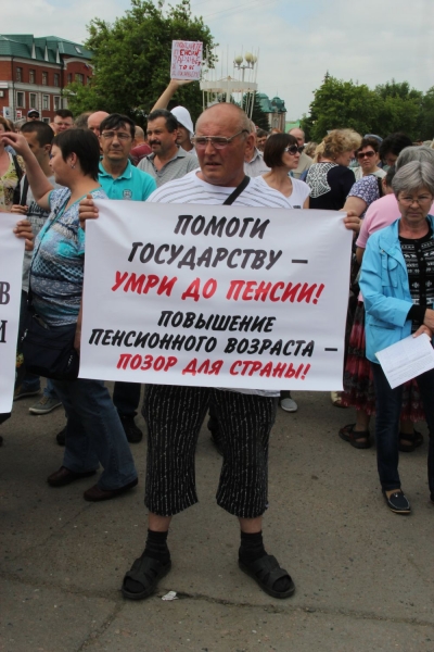 | Более 5000 омичей - против! Столько пришло накануне на митинг, поводом для которого стал законопроект о повышении пенсионного возраста россиян.Фото: С. Макиенко |