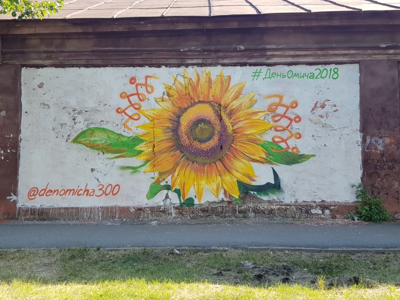 | Омск - город солнца! Подготовка к Дню Омича-2018 началась с подарка городу: теперь Омск украшен граффити с изображением цветов (пр. К.Маркса 37, пересечение ул. Жукова и ул. Масленникова. Авторы: И. Крячко, М. Абишев). И огромных солнечных символов на пешеходных тротуарах (у музтеатра, ТЦ Омский, на ост. гор. Водников. Авторы: С. Захарова и др.). Фото: предоставлено департаментом общественных отношений и соцполитики |