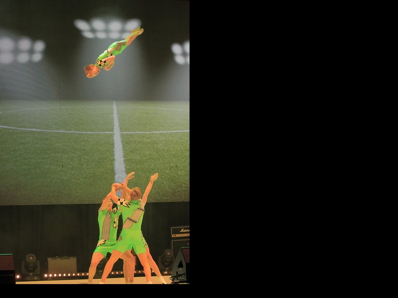 | Разве люди не летают? Омичу все по плечу! С Днем физкультурника в Омской филармонии приглашенных поздравили спортивно. Фото: А. Катаева